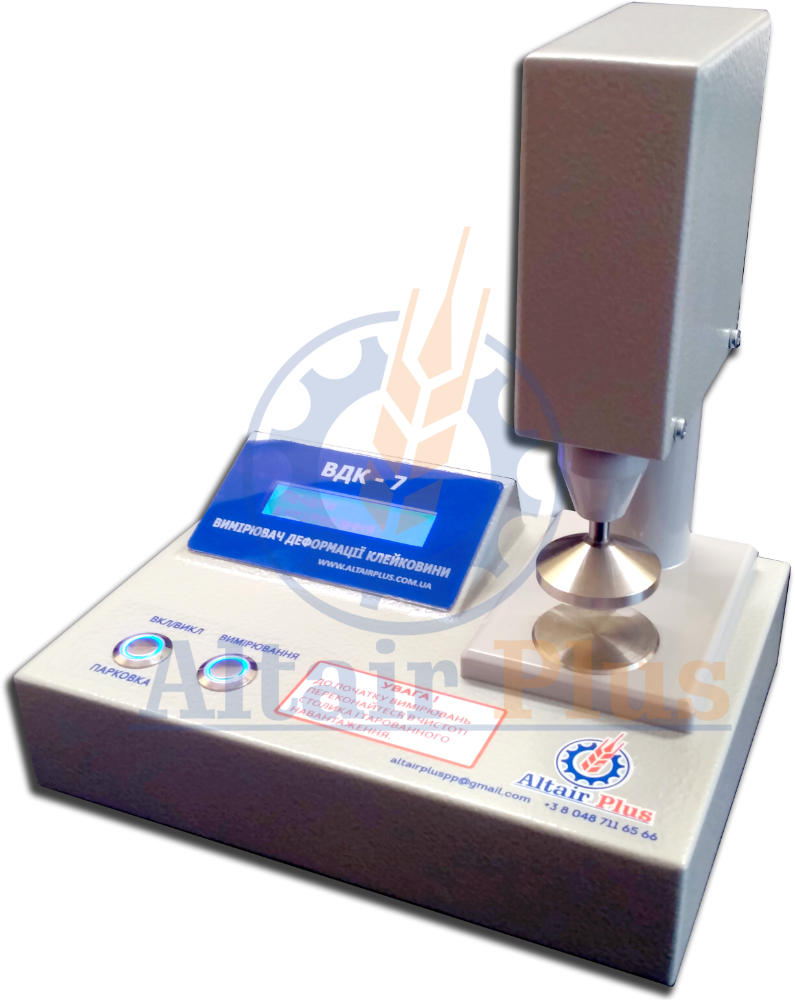 Вимірювач деформації клейковини ВДК - 7 призначений для визначення якості клейковини зерна пшениці і пшеничного борошна хлібопекарського і макаронного помелу за величиною її деформації під впливом навантаження певної величини протягом заданого інтервалу часу.
