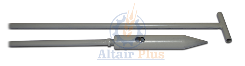 Поперечна рукоятка, міцно закріплена за середину під кутом 90° на кінці штанги, і значно спрощує витягування амбарного щупа з зерна після відкривання клапана і заповнення забірника.
